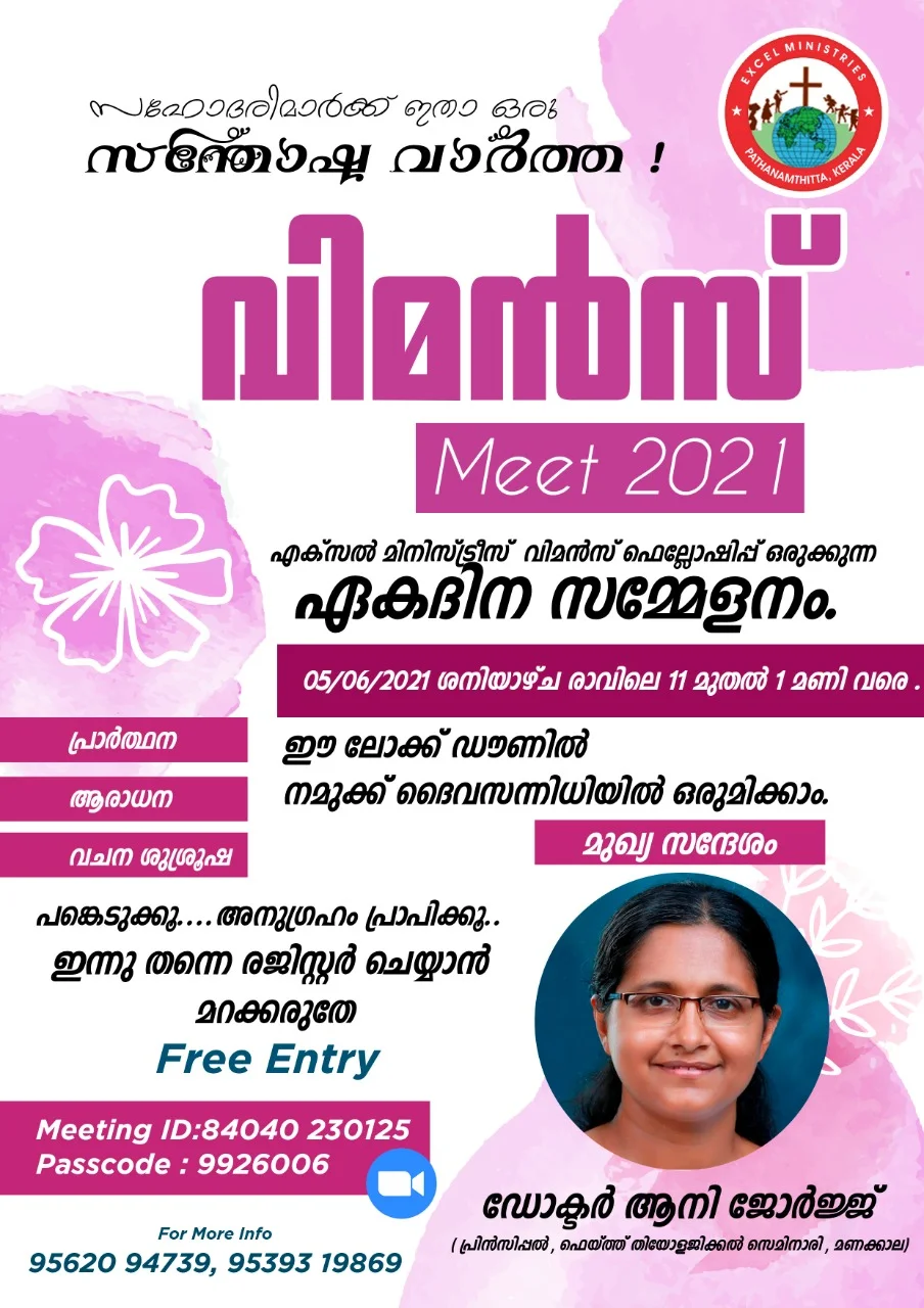 കോഴഞ്ചേരി : എക്സൽ മിനിസ്ട്രീസിന്റെ പ്വിമൻസ് മീറ്റ് 2021